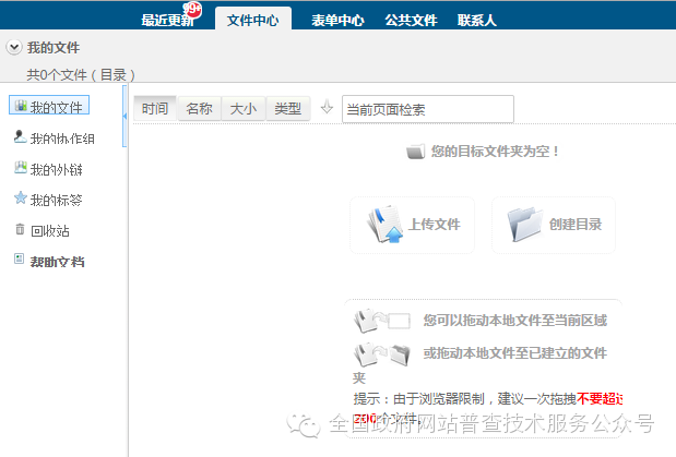 使用上級配發的賬號和密碼登錄成功后,點擊“文件中心”欄目,進入到“文件中心”界面,如下圖所示: