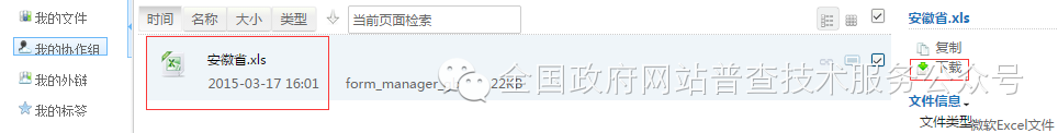 選中列出的excel文件,點擊“下載”按鈕,如下圖所示:
