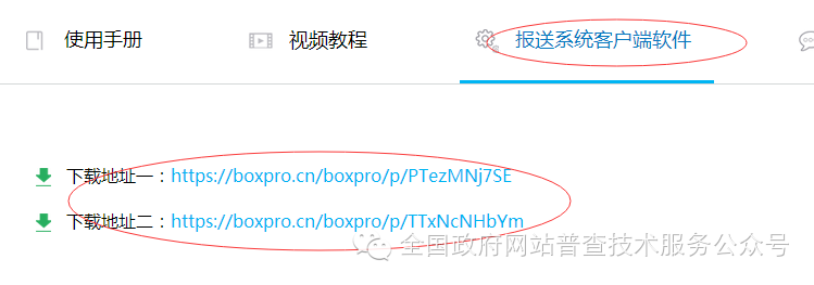 在全國政府網(wǎng)站信息報(bào)送系統(tǒng)網(wǎng)頁,點(diǎn)擊“報(bào)送系統(tǒng)客戶端軟件”如下圖所示: