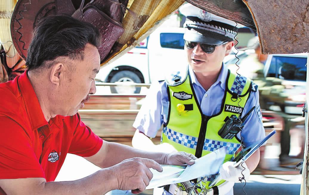 行動(dòng)在環(huán)山路、玉興路、珊瑚路、紅塔大道、撫仙路、鳳凰路等路段的重要路口對(duì)違規(guī)行駛的“八類車”進(jìn)行勸返,并向駕駛?cè)诵麄鳌鞍祟愜嚒毕扌袝r(shí)間及限行區(qū)域等交通安全知識(shí)。